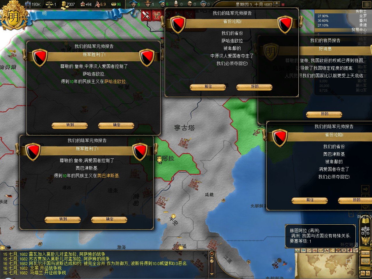 虽然建奴主动割地请降,但是这样BB太多,还是放了爱国者之后,搜刮威望吧。强迫建奴改变信仰,运气好的话,他能帮我传几块地的教。