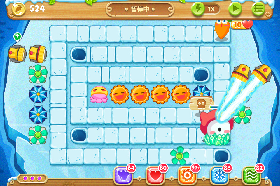 炮塔只能建在浮冰之上,边角位置经常不能建炮塔