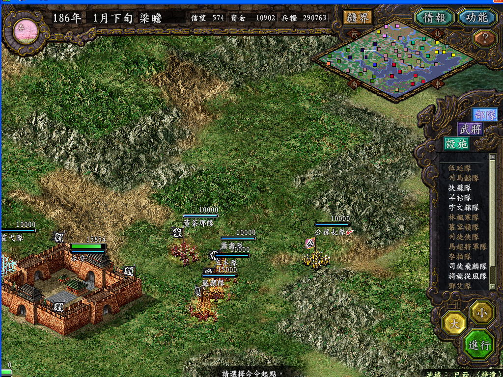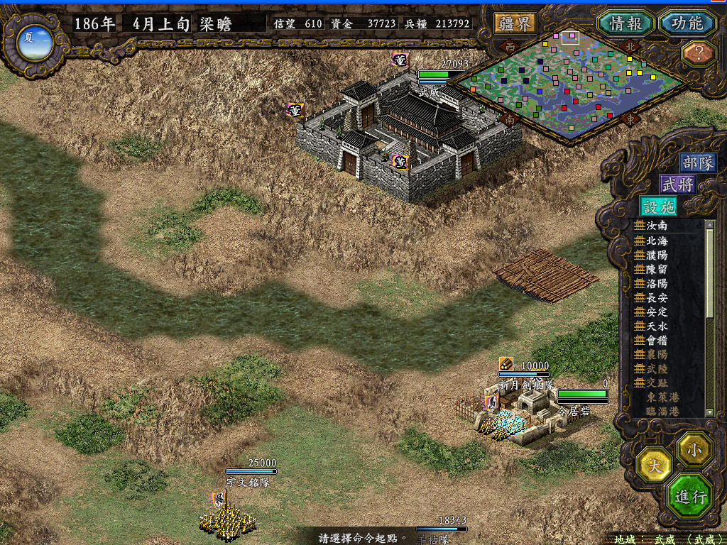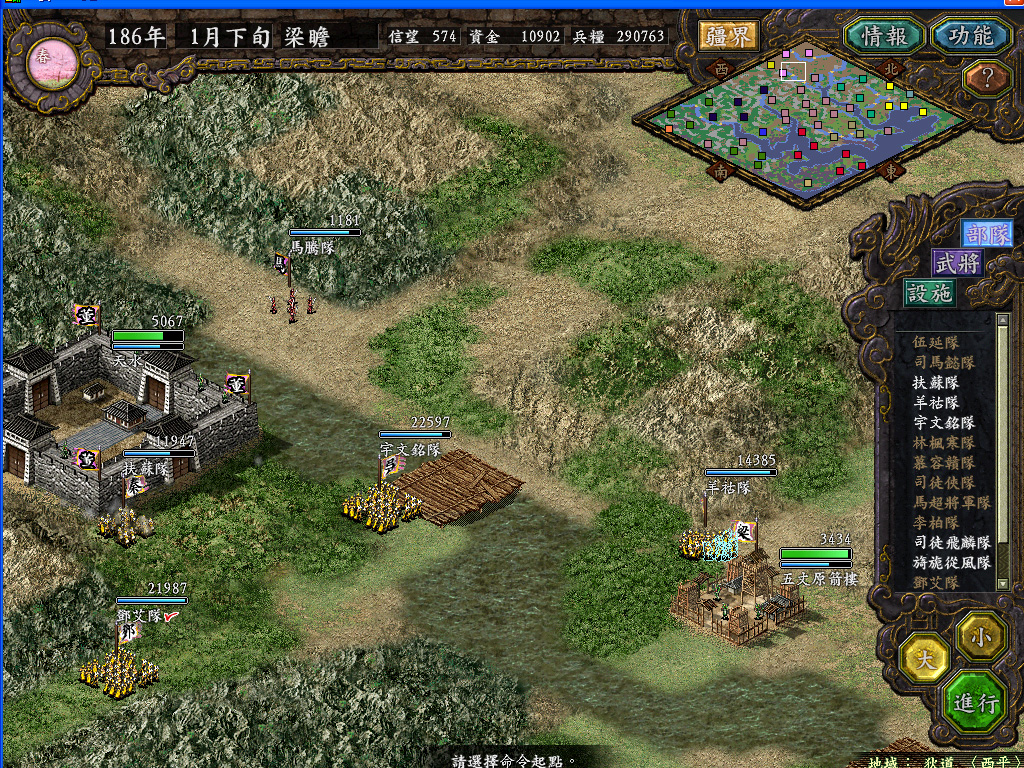 天水城调集了偶军十几万雄师,张辽完成了引蛇出洞的任务,邓口吃等已磨刀霍霍率军出城郊,漫长的磨兵打羌战役即将打响。在小地图遮住的右上角,天下无双的吕布居然主动从西平带2万人来天水送死