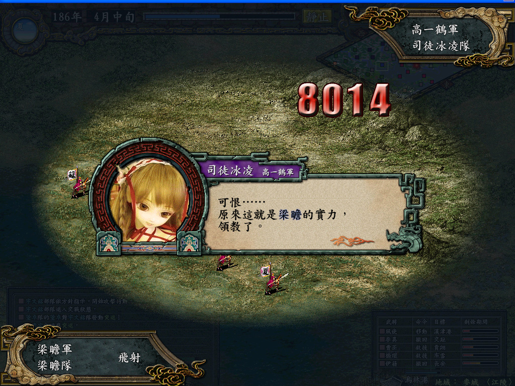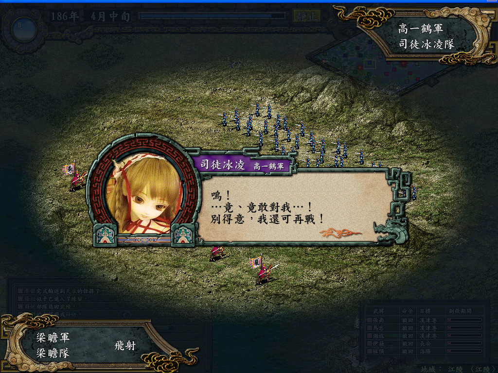 同旬,跟着死蚂蚁受了不少委屈(有好几旬只是被骂却没教兵法)的小猫MM艺成,四围只有统率和智力让人满意,武政都不够如意(发现时报告这两项都能上90+的),亏偶还延长了一个月教导时间,倒是死蚂蚁沾光学会了治疗,联系之前死蚂蚁授徒爱骂人的劣迹(记得他时光倒流之前当老师也骂人),这次骂了PLMM终于令偶忍无可忍,决定以后不再让他当教师