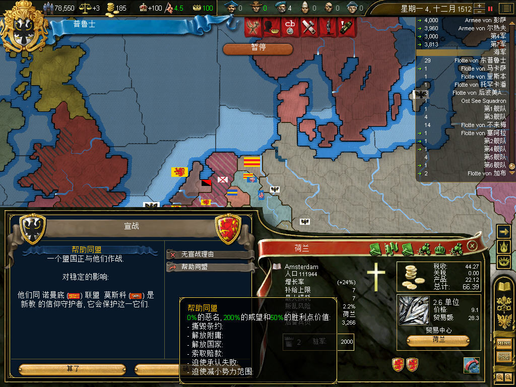 宣战荷兰,现在荷兰和勃艮第打的热火朝天,为了救援勃艮第,所以一定要出击