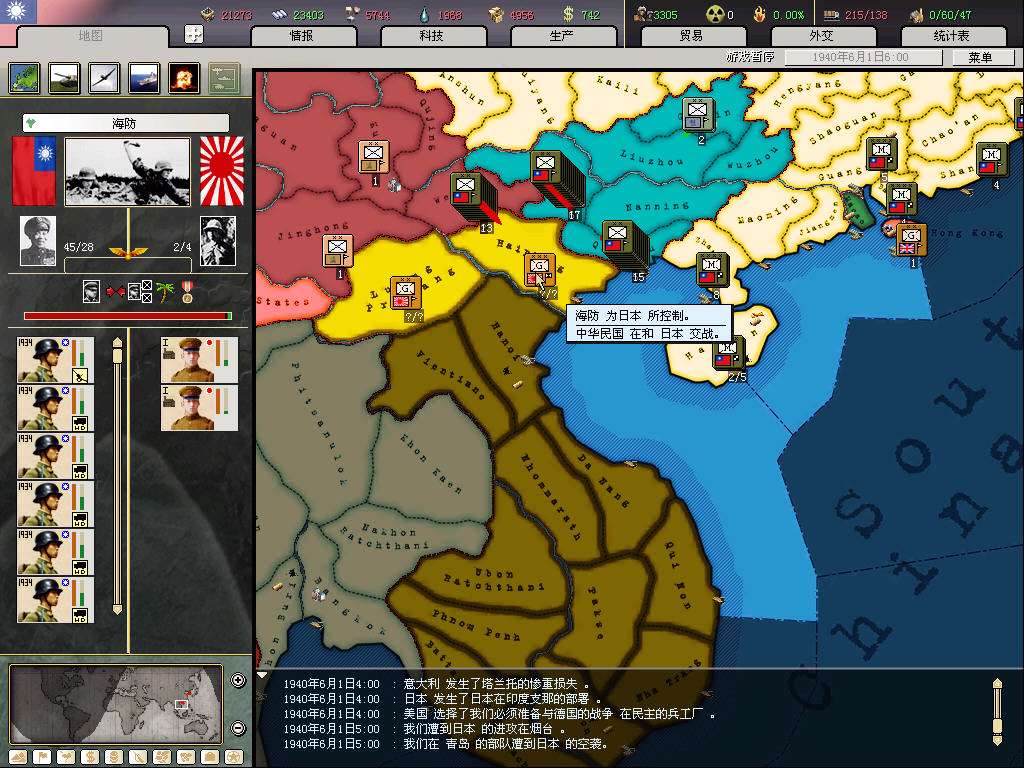 目前的进度已经快46年,还没落日,虽然早就统一了。。。。。基本上潜力3的有正面技能的将领都已经练满送傀儡国远征成中将放仓库了,可怜的倭寇现在只剩50多师,沙包只剩香港的11个师了