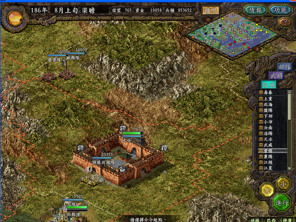 从风的发飙被证明是荆川战局的关键~永安可算川中门户(从汉中进攻要经关山重重,从交趾入川路途遥远又有南蛮虎视在旁),拿下永安重兵屯驻,守能确保了襄阳江陵的安全,攻能威胁川中诸城,被偶占着二刘当然是如鲠在喉寝食难安了。当下联军攻出,准备与偶会战永安