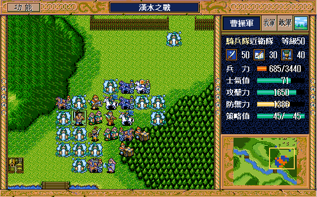 请教月亮兄,第8回合,夏侯惇先动(兵力586),曹仁死活不进森林(SL300次以上),导致后面走位不好。看你攻略,夏侯惇后动,是否前面赵何有少反击一次?我试一下少反击一次(夏侯惇996,超过40%)走位OK的,但到第28回合,弓兵2(清醒)攻击赵何(85.98)而不是关平(关平无法就业),第29回合,会攻击关平。