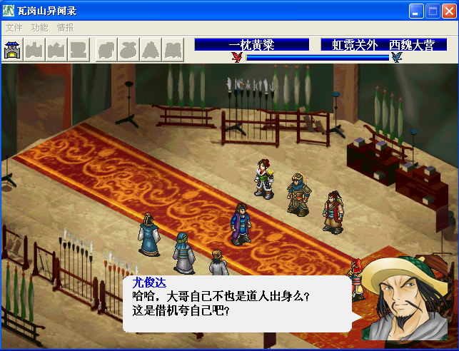 忍不住再发一个BUG,神居山,悟空顶单挑,如果输给东方伯,会在单挑界面出现徐茂公奇怪的对话,然后直接跳到驿站的界面。