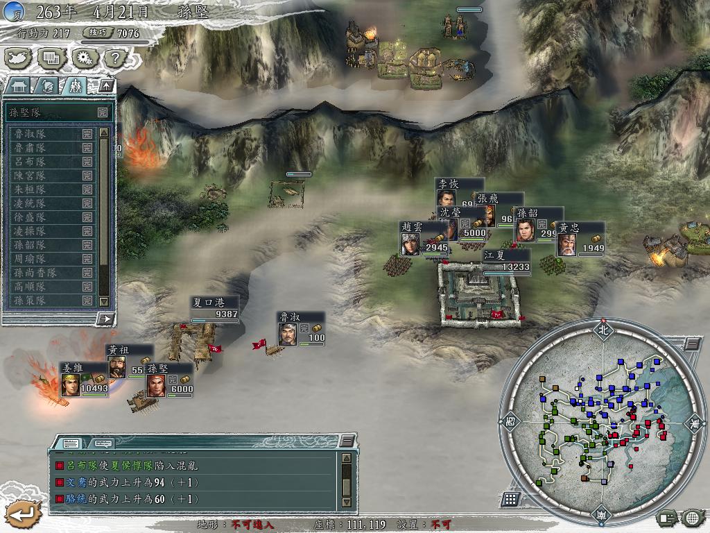 结果后面刘备主力攻我,包括关羽,张飞,赵云,黄忠,魏延,姜维在内的大腕全扑江夏,夏口而去,再坚持了3个月后,终于被其兵临城下,我估计是守不住了