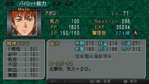 不过有一点很值得一提,ACE奖励,上一作,是指挥效果范围加大,而这一作改成150气力后每回合随机一个精神……有点无语,这完全不实用,都靠运气的。也是唇气楼很强了,所以鲁鲁的ACE要被削弱。
